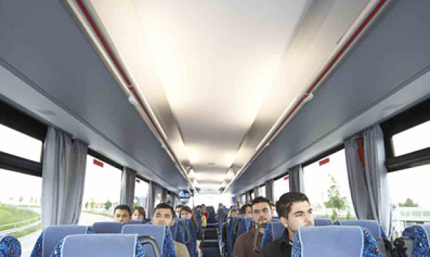 : Grandes baies latérales teintées, éclairage indirect, racks et soute à bagages spacieux, diverses girouettes, grande variété de sièges ergonomiques, boîte de vitesses manuelle à 6 rapports ou boîte automatique également disponible ; buses d'aération, toilettes et kitchenette en option