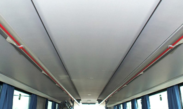 : Grandes baies latérales teintées, éclairage indirect, racks et soute à bagages spacieux, diverses girouettes, grande variété de sièges ergonomiques, boîte de vitesses manuelle à 12 rapports ou boîte automatique également disponible ; buses d'aération, toilettes et kitchenette en option