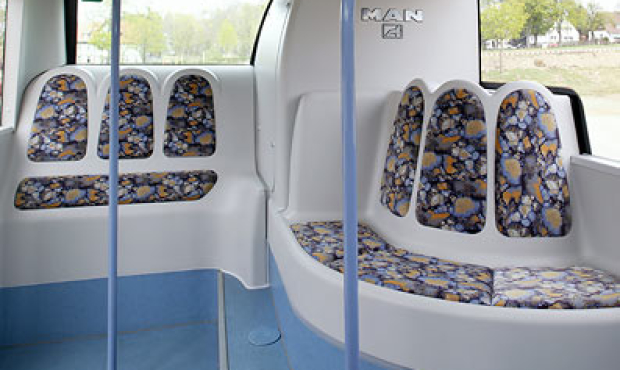 : Couleurs claires, sièges confortables, sièges suspendus Cantilever, baies latérales teintées, accès sans marche, fonction d'agenouillement, poste de conduite ergonomique ; rampe rabattable pour fauteuils roulants et poussettes en option, équipement possible pour personnes à mobilité réduite
